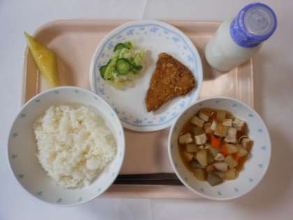ご飯 鰹の更紗揚げ ぐる煮 一塩野菜 メロン 牛乳