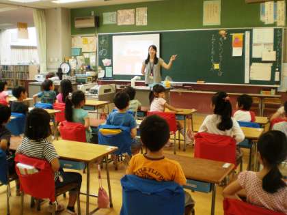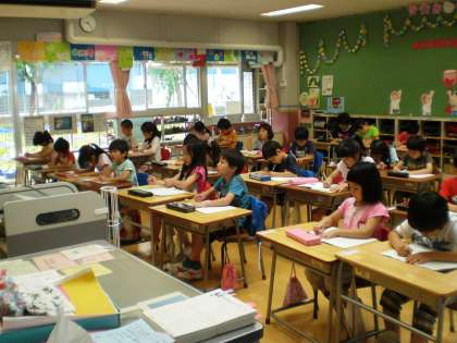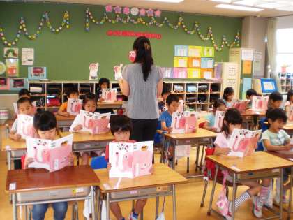 小さく書く「っ」の学習をしました。「おとしものしちゃった」という絵本と教科書を使って学習しました。最後はノートに小さい「っ」の付く言葉をかきました。