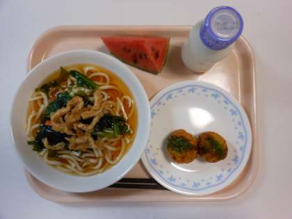 冷やしきつねうどん 海鮮ポテト スイカ 牛乳
