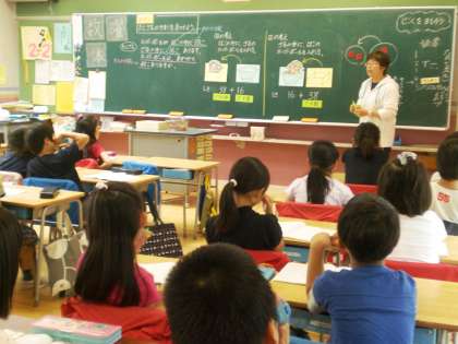 箱の中に入っているスーパーボールとざるに入っているスーパーボールを合わせるといくつになるでしょうという問題を使って、たし算ではたされる数とたす数を入れかえても、答えは同じになるという学習をしました。