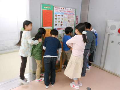 食べる直前までメニューが内緒です。サンプルケースの前には2年生が沢山見に来ていました。