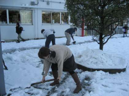 今朝は、主事さんを中心に教員、保護者の皆様で子ども達が登校する前に、雪かきをしました。お手伝いに来てくださった保護者の皆様、本当にありがとうございます。