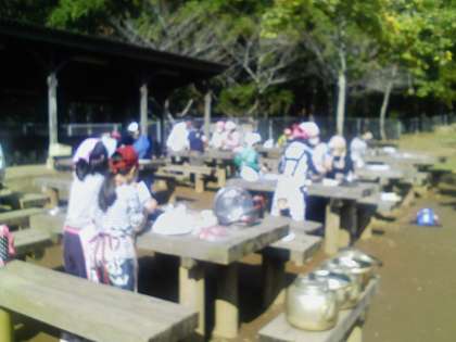 飯ごう炊爨。豚汁作りが始まりました。本日の昼御飯になります。