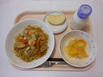 海鮮焼きそば おさつチップ りんご 牛乳