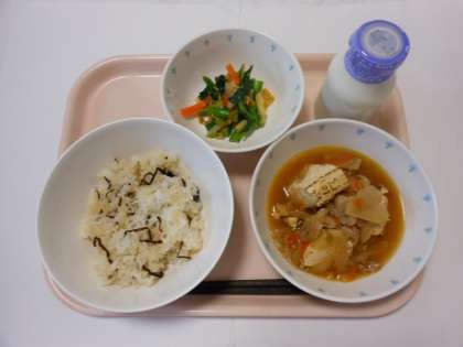 昆布ご飯 肉豆腐 ごま和え 牛乳