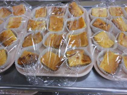また、6年2組と1年2組のランチルーム給食がありました。お楽しみデザートは、チーズケーキです。