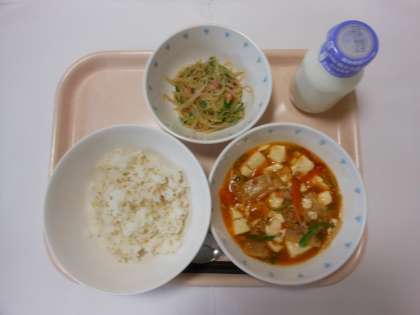 ごまご飯 西湖豆腐 春雨サラダ 牛乳