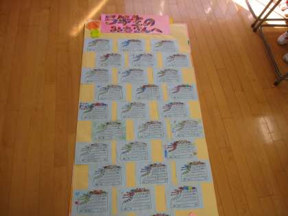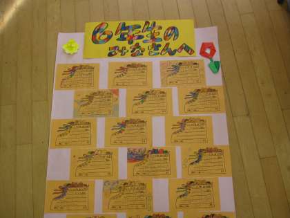 先週行われた移杖式を見て、1年生のみんなから5・6年生にメッセージを書きました。