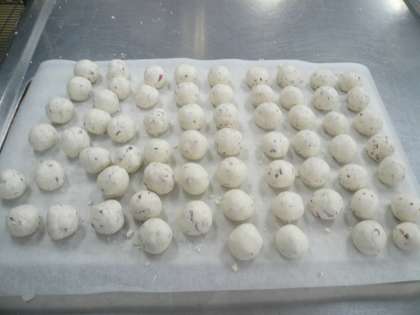 もちもちした団子にきなこをまぶしました。とても喜んで食べていました。