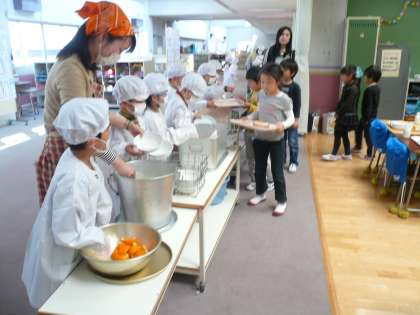 今日から1年生の給食が始まりました。給食がなぜあるのか?どんな人が給食を作ってくれているのか?どんな食べ方がいいのか?などを話しました。三角食べを知っている児童が多く見受けられました。これからが楽しみです。