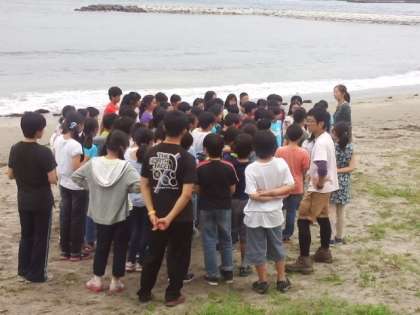 興津海岸で砂上運動会はできませんでしたが、潮風を受けて、学園に向かいます。