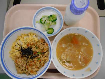 献立 高野豆腐のそぼろ丼 みそ汁 一塩野菜 牛乳