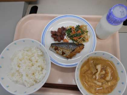 献立 ごはん みそ汁 鰆の香味焼き ごま和え 煮豆 牛乳