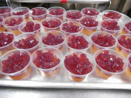 今日は、この季節のデザートである「あじさいゼリー」でした。りんごゼリーとぶどうゼリーの2種類を、形やかたさを替えて作りました。教室から見えるあじさいを見ながら食べていることもたちの姿が、ほのぼのしていました。
