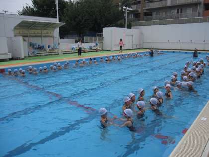 7/4 1・2年「水に慣れる運動遊び」 公開日 2014/07/03 更新日 2014/07/03 共通 今年度、2回目のプールでの授業です。 動物の真似をしたり、バディと一緒にじゃんけん列車をしたりして、水に慣れる運動遊びをしました。 1年生も少しずつ水に顔をつけたり、もぐったりすることができるようになりました。 いいね(0)