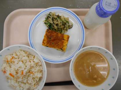 献立 あけぼのごはん みそ汁 切干大根の玉子焼き のりあえ 牛乳
