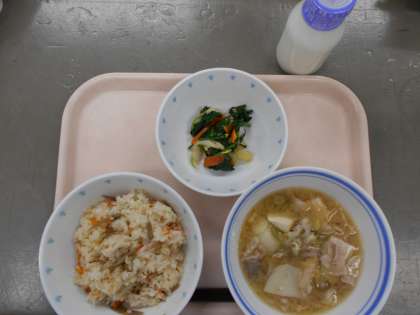 献立 金平ごぼう 芋煮 おかか和え 牛乳
