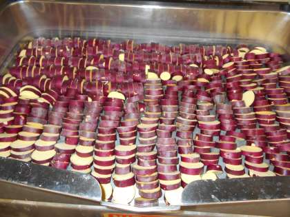 今日は、和風献立でした。素材の味やだしの香りが引き立っていました。1年生から「給食室の中を見たい。」とリクエストがあり、今日のさつま芋の甘煮の様子を写真に撮って給食の時間に見せてあげました。「わあ・・・すごいさつま芋が並んでる。どのさつま芋食べたのかな?」と興味津々でした。
