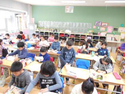 2年算数「はこの形」 公開日 2015/03/13 更新日 2015/03/13 共通 自分たちで持ち寄った箱の面を画用紙に写して、箱の形を作りました。 どの面とどの面をつなぐとよいのか、試行錯誤しながら考えました。 いろいろなつなげ方があり、面白いです。 いいね(0)