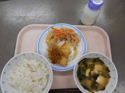 献立 ごはん みそ汁 魚のから揚げネギソース おかか和え 牛乳