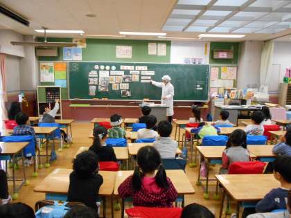 今日から1年生の給食が始まりました。4校時には「たのしいきゅうしょく」の話をしました。給食室で毎日おいしい給食を作っていること、「いただきます。」「ごちそうさま。」には意味があることっを伝えました。