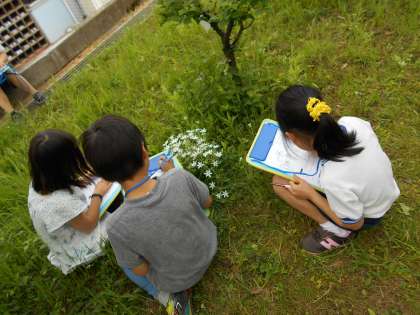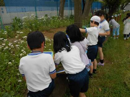 裏庭に春を見つけに出かけました。観察カードを持ってしっかり観察をしました。