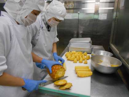 今日は、沖縄県の郷土料理でした。生パイナップルは子どもたちにも大人気でした。