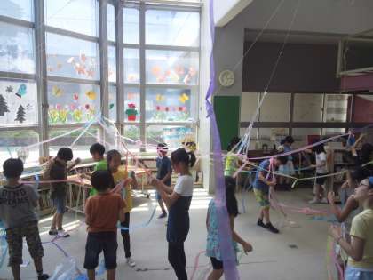 むすんで つなげて。友達と協力して、素敵なクモのすができました。
