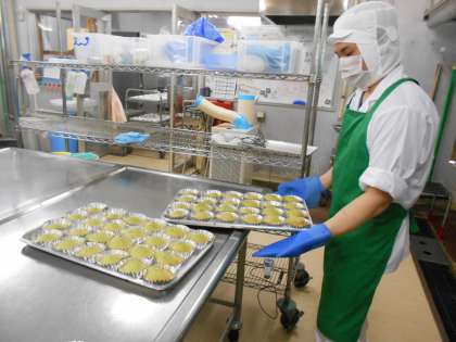 今日は、抹茶ケーキが人気がありました。抹茶の苦味がほんのり感じられましたが、「おいしかった。また作って。」との感想がありうれしかったです。