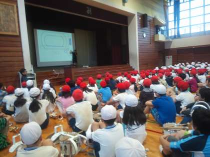 雨のため、体育館で運動会の入場方法を確認しています。