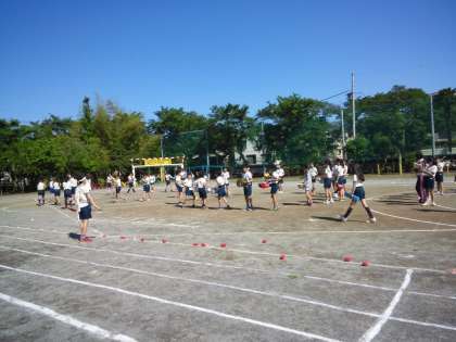 6年生がマーチングドリルの練習をしています。