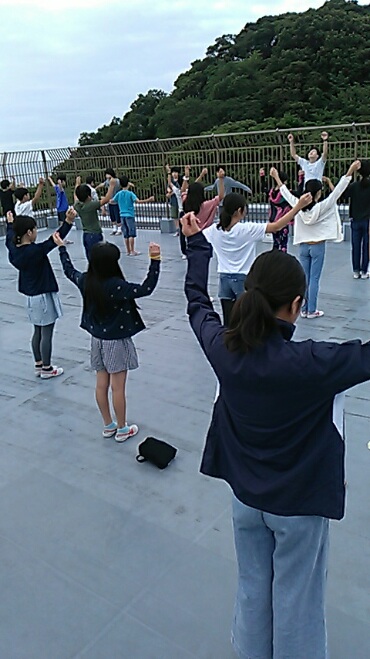 昨晩のレク大会の様子です Sケンとしっぽ取りゲームをグループに分かれて行いました どのグループも力一杯頑張りました 今朝は晴れていましたので 屋上で朝会を行いました 今大原漁港に向けてバスを進めています 漁港の見学と干物体験を行います