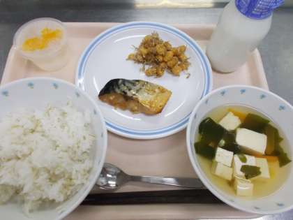 献立 ごはん すまし汁 鯖の香味焼き 大豆とじゃこのカリカリ揚げ サイダーゼリー