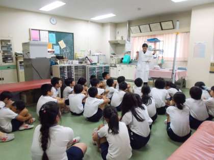 高学年の発育測定の前に「骨の成長」の話をしました。骨の成長は、壊されて、作られているの繰り返しで成長していること、今の時期が人生で一番成長する時で、栄養(カルシム、ビタミンD)や、運動、日光浴、そして睡眠が大切であることを伝えました。