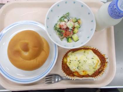 献立 ミルクパン ムサカ グリークサラダ 牛乳
