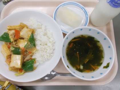 献立 ごはん 生揚げと野菜の味噌いため わかめスープ なし 牛乳