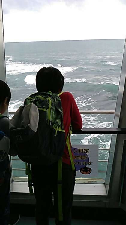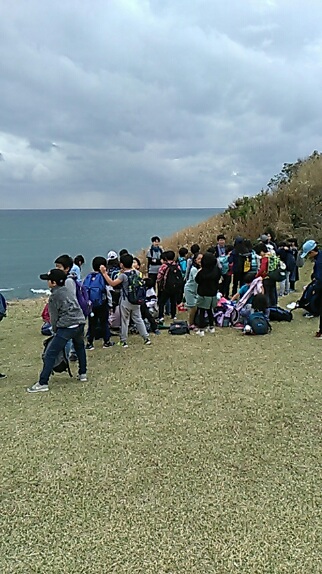 早朝よりお見送りいただきましてありがとうございました。ただいま学園で荷物整理をしています。本日は雨に降られることなく予定通り活動出来ました。理想郷でのハイキング、海中公園の見学では、海の香りや、切り立った崖とそれに続く海岸線を目の当たりに出来ました。海中公園では階段を下りて海の中に入り、窓の外を泳ぐ魚たちの姿を観察しました。サザエもガラスに張り付いていました。避難訓練が終わった頃から雨が降りだしました。星空の観察が出来るか、様子を見ているところです。