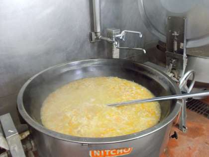 今日は、トマトジュースを米と炊き込んだチキンライスでした。均一に味がなじみ食べやすかったようです。ジュリエンヌスープは、フランスのスープで「細い」という意味があります。野菜を線切りにして鶏ガラスープで野菜を煮込みます。優しい味のするスープでした。
