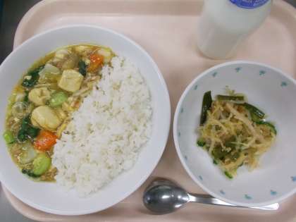 献立 ごはん カレー豆腐 糸寒天のかみかみ和え 牛乳