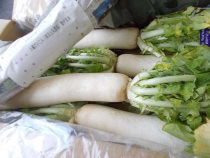今日は東京都の郷土料理でした。深川飯は、江戸時代東京の深川であさりがとれたものをご飯に炊き込んで食べたそうです。生姜を効かせた味つけにしました。ふろふき大根は、東京都産の大蔵大根を使いました。水分があり、だし汁がしみて苦みが感じられなかったので、食べやすくここ数年の中では、一番よく食べていました。見本で大蔵大根をクラスに持っていくと5年生、3年生は大蔵大根と青首大根の違いに気づきました。