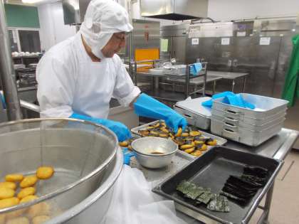 今日は、北海道の郷土料理「道産子汁、いももち」でした。寒くなったので、温かい汁ものがおいしい季節になりました。