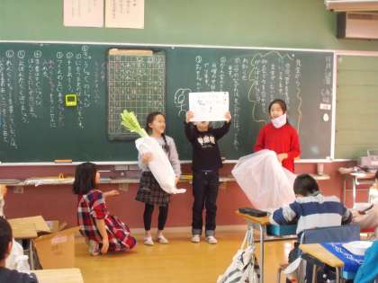 来週2年生が近隣の畑に大根の収穫をします。昨年抜いた3年生が大根の抜き方ポイントを2年生の各クラスに行って発表しました。3年生には、一週間という短い時間で大根の抜き方ポイントを話してもらうお願いしましたが、1組2組ともとても上手に説明をしてくれました。