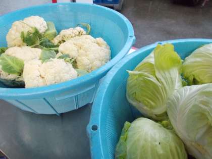 カリフラワーとキャベツは都立園芸高校の生徒が授業で育てたものです。カリフラワーは見たことないような大きなサイズでした。今年は暖冬なので、大きくなってしまったそうです。