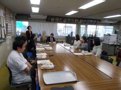 お昼には、会議室で学校給食運営協議会が行われました。この会議は、1年に1回行われる会議です。教育委員会、PTA、給食委託業者、学校と4者が給食運営について協議します。PTAの代表で参加してくださった保護者からは、「毎日おいしい給食をありがとうございます。」「家庭での食事作りや買い物なども色々意識して作っていいきたいです。」などたくさんの感想やご意見をいただきました。