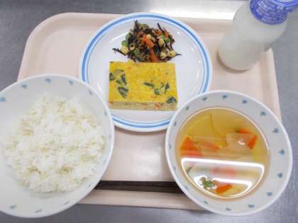 献立 ごはん すまし汁 千草焼き 大豆とひじきの煮物 牛乳