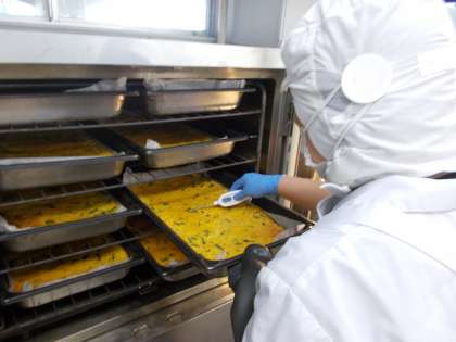 今日は、彩りがきれいな千草焼ができました。すまし汁には、栗山農園で朝どりした大根や、大根葉を入れました。お店で今の時期には大根葉はついていませんが、地産地消の良さで新鮮な大根葉も使い給食をつくれるありがたさを感じました。