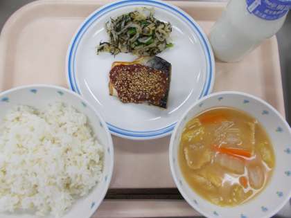 献立 ごはん みそ汁 鯖のごまみそ焼き のり和え 牛乳