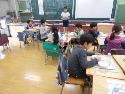今日と明日は給食委員会が各クラスの食器の片付けを調査します。