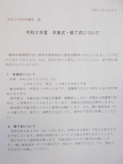 令和2年度 卒業式・修了式について 公開日 2020/03/06 更新日 2020/03/06 共通 令和2年度 卒業式と修了式について、現段階のものを掲載しますので、ご確認ください。画像が見にくくて申し訳ありません。 いいね(0)