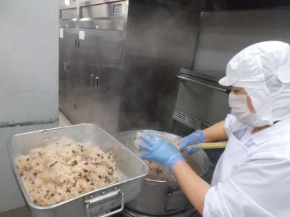 毎月19日は、食育の「わ食」献立です。今日は6年生の卒業をお祝いして赤飯です。日本の食文化ではハレの日(特別な日)には、赤飯を炊いてお祝いをしました。赤色は邪気を払うといわれています。日本の食文化を給食でも伝承していきたいと思います。鰆は、照りがでるように調理しました。
